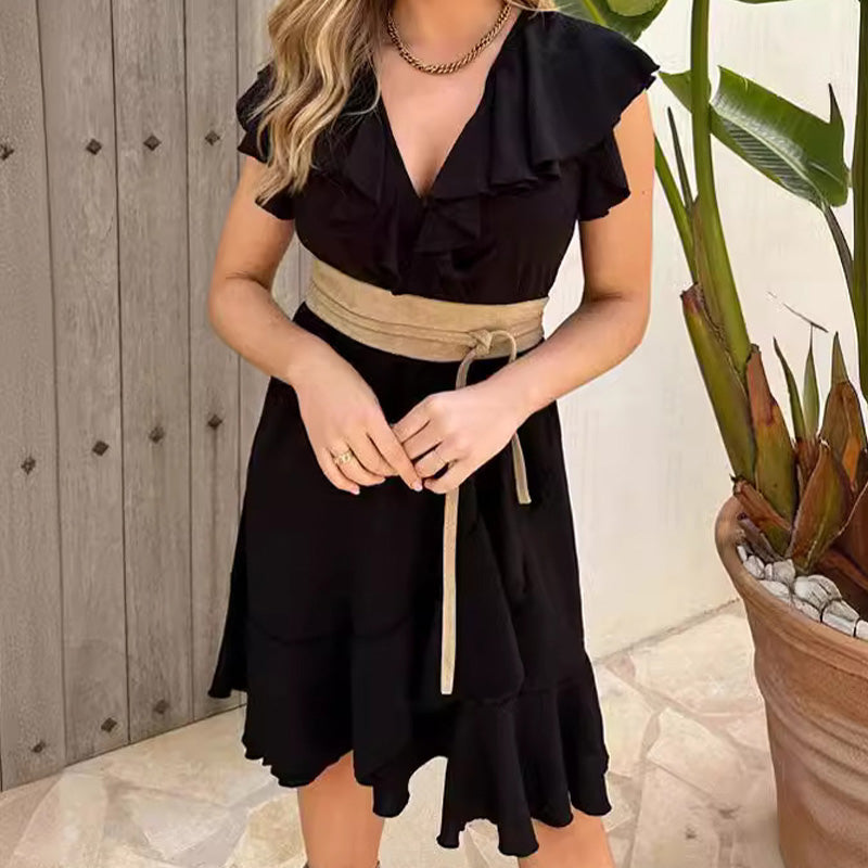 🎉Summer New Arrivals👗Women's Elegant Waist Tie V-Neck Ruffle Dress