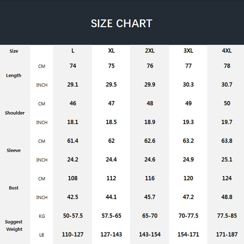 Size: L, XL, 2XL, 3XL, 4XL